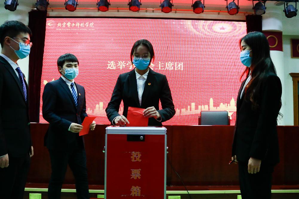 會議審議通過了《北京電子科技學院第九屆學生會工作報告》《北京電子科技學院第十次學生代表大會提案工作報告》《關于修改<北京電子科技學院學生會章程>的報告》等文件,正式選舉產生了第十次學代會常任代表、新一屆學生會委員會委員和主席團成員。