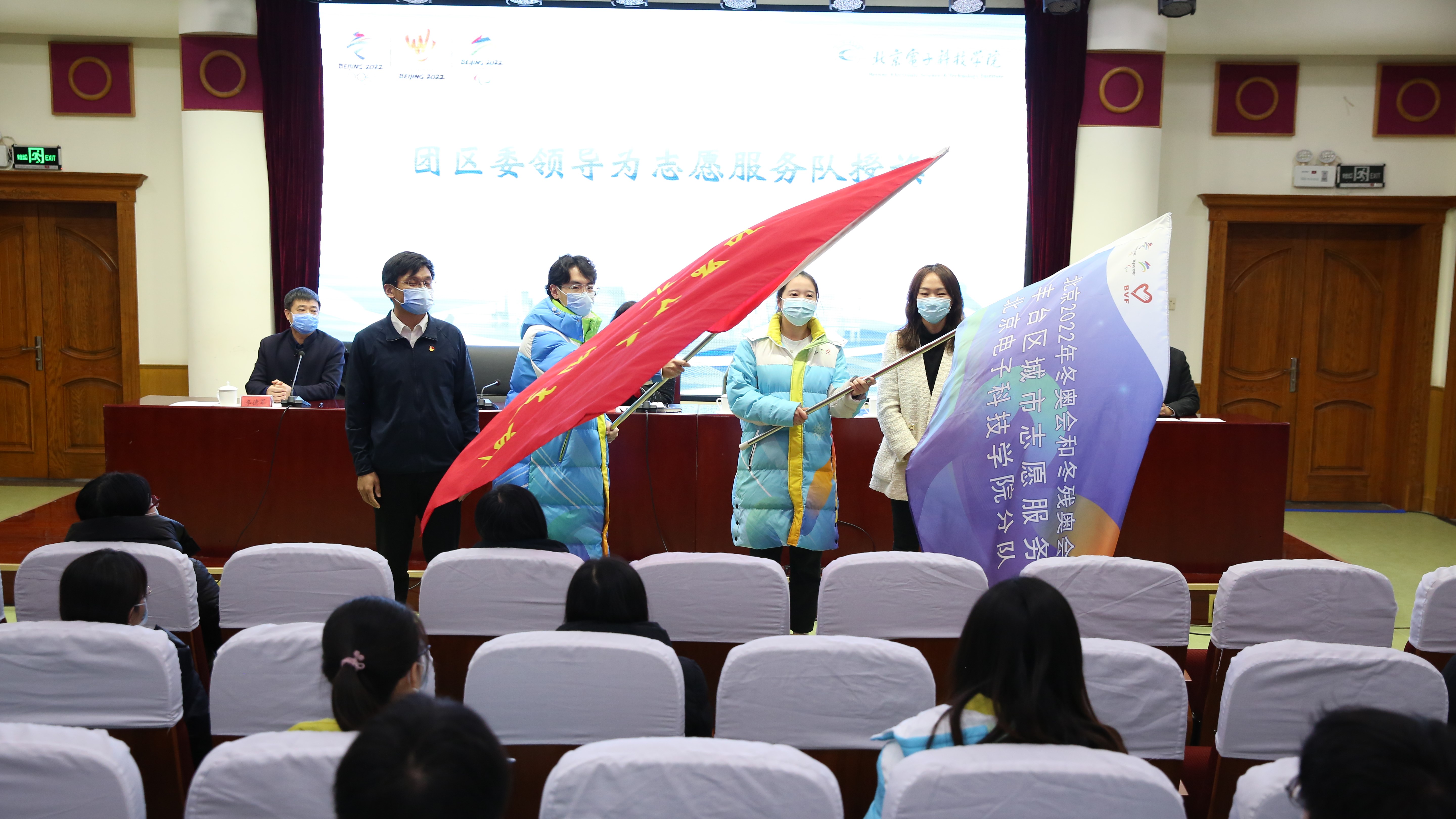 會上,豐臺、石景山團區委負責同志為學院志愿服務隊授旗,學工部、后勤中心負責同志為志愿者代表發放了學院為志愿者精心準備的暖心禮包,全體志愿者莊嚴宣誓。