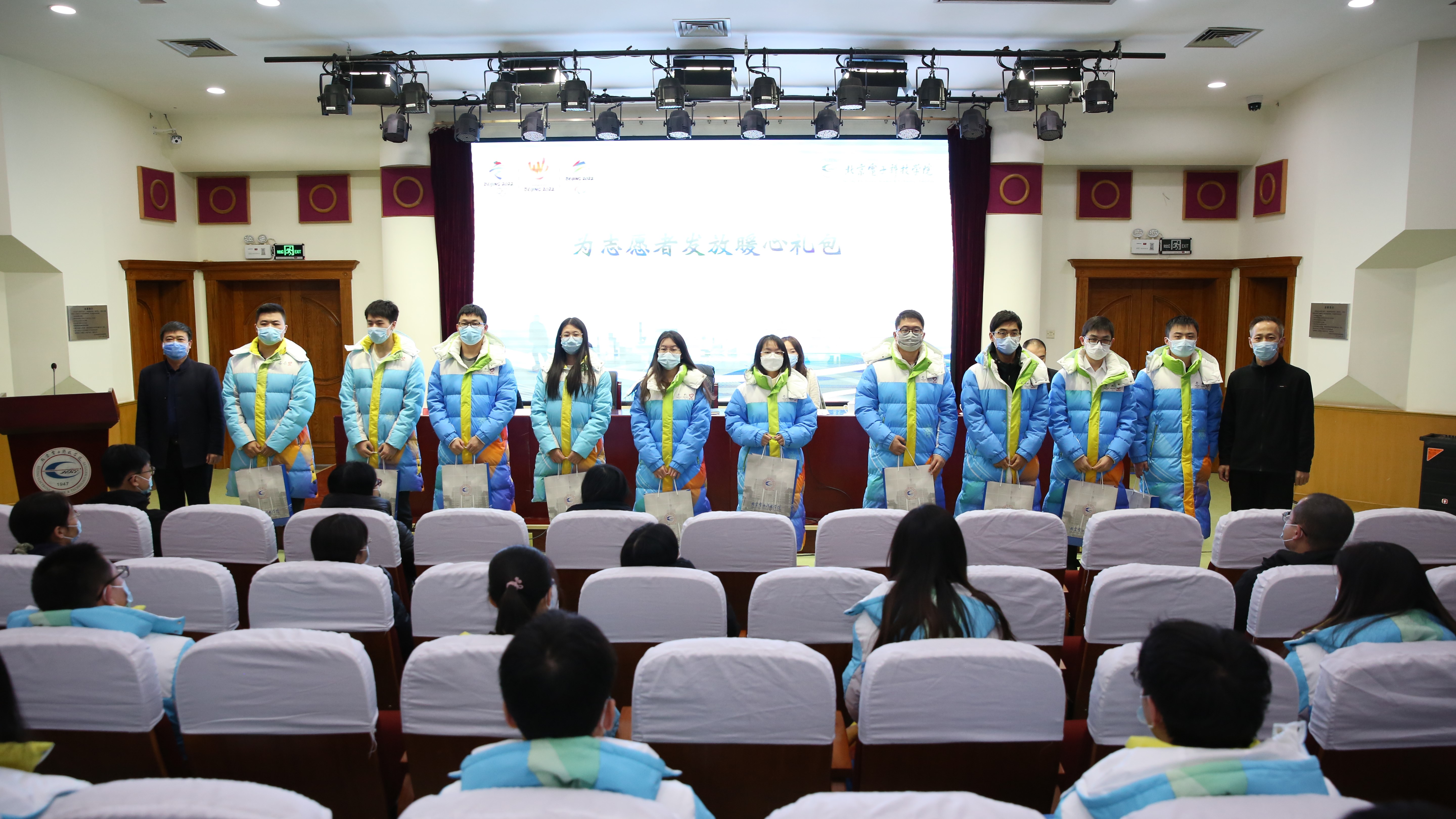 學工部、后勤中心負責同志為志愿者代表發放暖心禮包