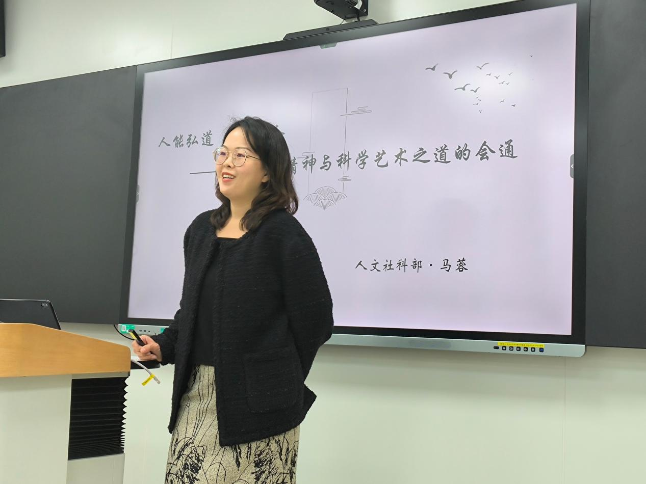 2025年4月10日下午,人文社科部馬蓉老師應邀在教學樓608舉辦“人能弘道 非道弘人——原始儒家精神與科學藝術之道的會通”美育專題講座,學院20余名師生參加。活動由研究生部、人文社科部主辦,“科學與藝術”課程組承辦。