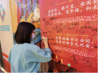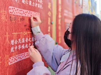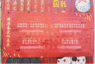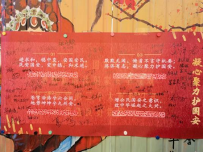 (同學們在展板上留言簽名,鐫刻自己的活動印記)