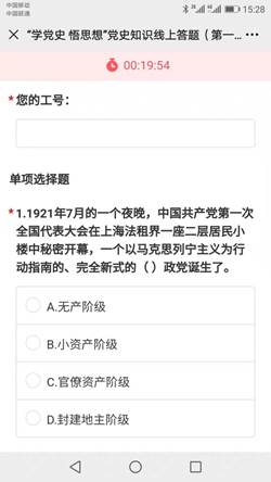 答題活動分兩部分進行。學院使用“問卷星”app設計制作黨史知識答題頁面,每周發(fā)布1期,每期10道題,教職工通過手機登錄后完成線上答題。學生通過“中國大學生在線”微信公眾號的“黨史答題”欄目參加答題活動。