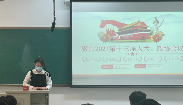 首先由王思溦同學為大家介紹了兩會的基本情況及其重要時代意義。
