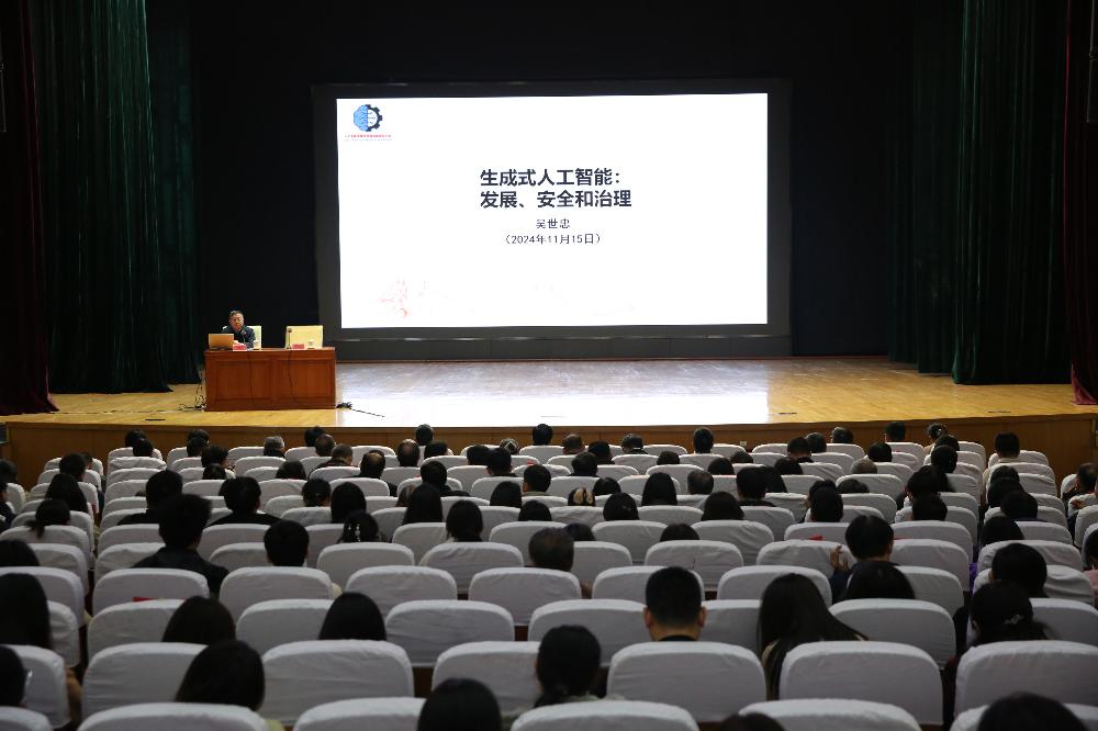 11月15日下午,電科院邀請(qǐng)中國(guó)工程院院士、國(guó)家保密局科技委主任吳世忠以“生成式人工智能:發(fā)展、安全和治理”為題作學(xué)術(shù)報(bào)告。吳院士圍繞“人工智能發(fā)展勢(shì)不可擋”“風(fēng)險(xiǎn)隱患復(fù)雜嚴(yán)峻”“安全治理牽動(dòng)世界”“中國(guó)治理大國(guó)智慧”等4個(gè)方面進(jìn)行專題輔導(dǎo)。此次報(bào)告幫助廣大師生深刻認(rèn)識(shí)了當(dāng)前生成式人工智能的安全形勢(shì)和發(fā)展趨勢(shì),加深了對(duì)習(xí)近平總書記關(guān)于人工智能的重要論述的理解把握,進(jìn)一步增強(qiáng)了師生積極推進(jìn)我國(guó)人工智能發(fā)展的責(zé)任感和使命感。院領(lǐng)導(dǎo)、各部門班子成員、專任教師、學(xué)生代表700余人聆聽了報(bào)告。