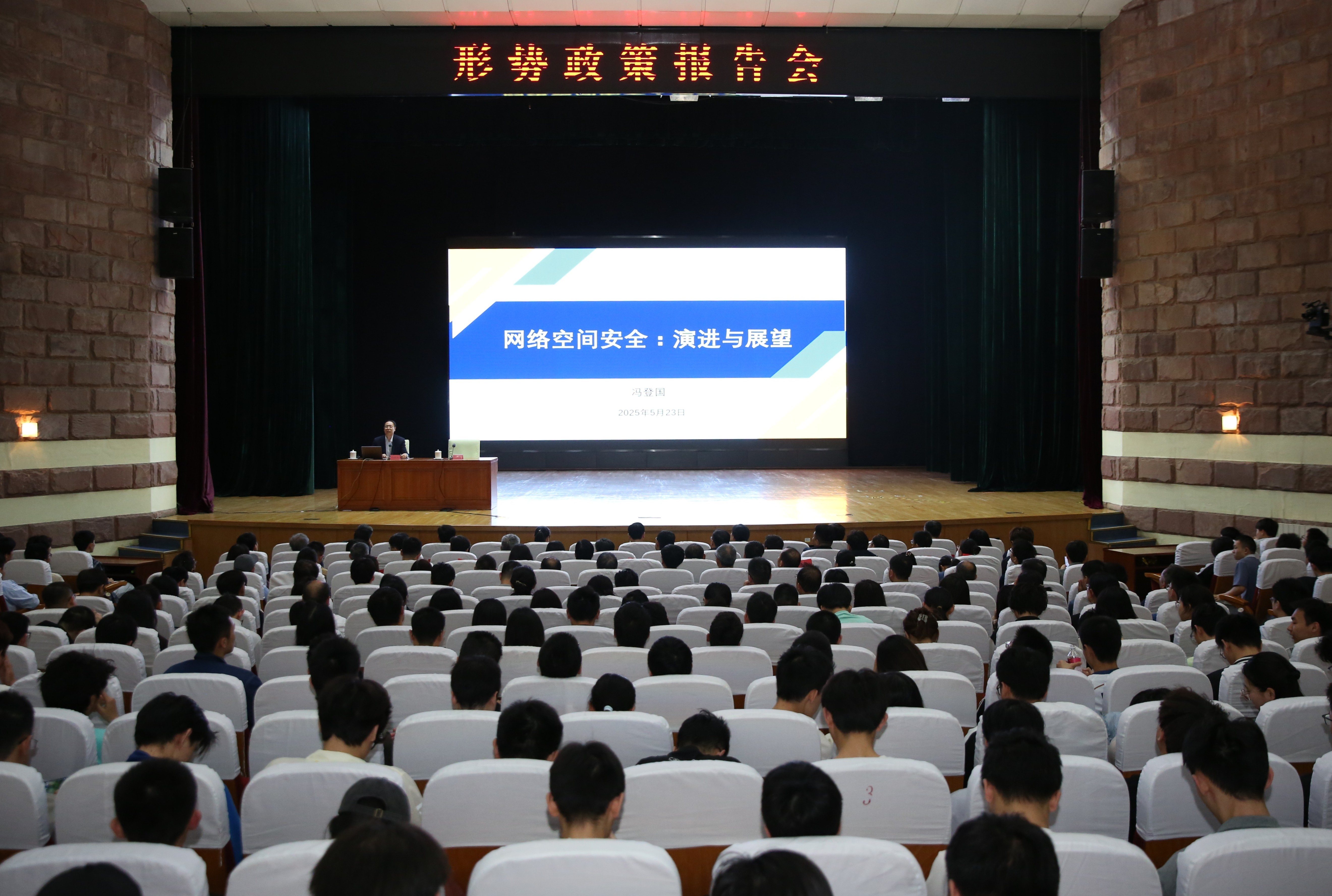 523日下午,電科院邀請(qǐng)中國(guó)科學(xué)院院士、北京信息科學(xué)技術(shù)研究院院長(zhǎng)馮登國(guó)“網(wǎng)絡(luò)空間安全:演進(jìn)與展望”為題作形勢(shì)政策報(bào)告。報(bào)告從網(wǎng)絡(luò)空間和網(wǎng)絡(luò)空間安全的基本概念出發(fā),梳理網(wǎng)絡(luò)空間安全的發(fā)展歷程,闡釋網(wǎng)絡(luò)空間安全的發(fā)展規(guī)律和特點(diǎn),分析網(wǎng)絡(luò)空間安全的發(fā)展現(xiàn)狀和挑戰(zhàn),展望網(wǎng)絡(luò)空間安全的未來(lái)發(fā)展趨勢(shì)。報(bào)告對(duì)師生深刻理解習(xí)近平總書(shū)記關(guān)于網(wǎng)絡(luò)安全的重要論述,深入認(rèn)識(shí)當(dāng)前網(wǎng)絡(luò)空間安全發(fā)展現(xiàn)狀和趨勢(shì),加強(qiáng)學(xué)院網(wǎng)絡(luò)空間安全學(xué)科專業(yè)建設(shè),具有很好的指導(dǎo)和幫助作用。院黨委理論學(xué)習(xí)中心組成員、師生代表共2000余人聆聽(tīng)報(bào)告。